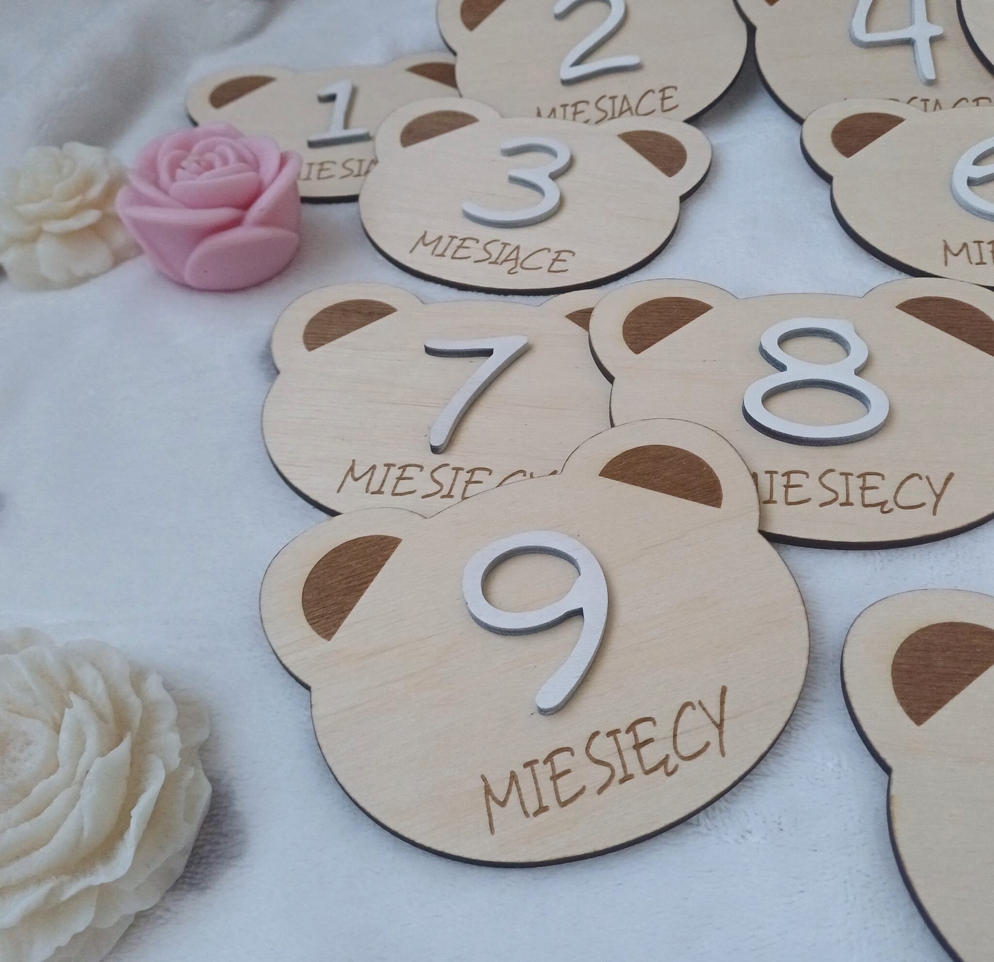 Dzięki nim stworzysz wzruszającą serię zdjęć, która po latach będzie piękną pamiątką dla całej rodziny. Każdy miś został starannie wykonany, a cyferki w kolorze białym, różowym lub niebieskim podkreślają jego wyjątkowy wygląd.