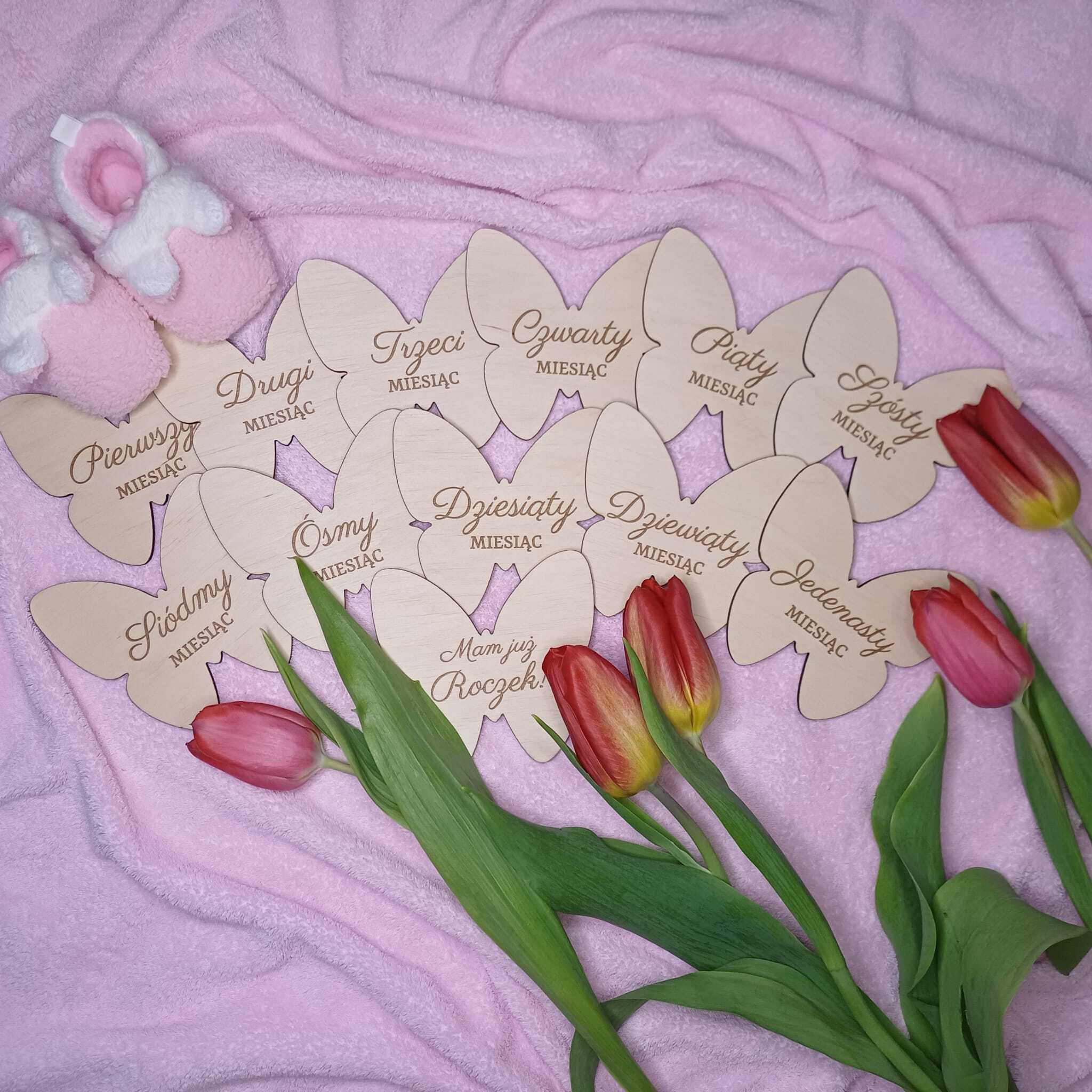 Oferujemy 12 pamiątkowych drewnianych tabliczek w kształcie motylków, które pozwolą w wyjątkowy sposób zachować wspomnienia z pierwszego roku życia Twojego maluszka. Zestaw zawiera 12 tabliczek z kolejnymi miesiącami, które doskonale sprawdzą się jako dodatek do sesji zdjęciowych i pomogą uchwycić ważne etapy rozwoju dziecka.