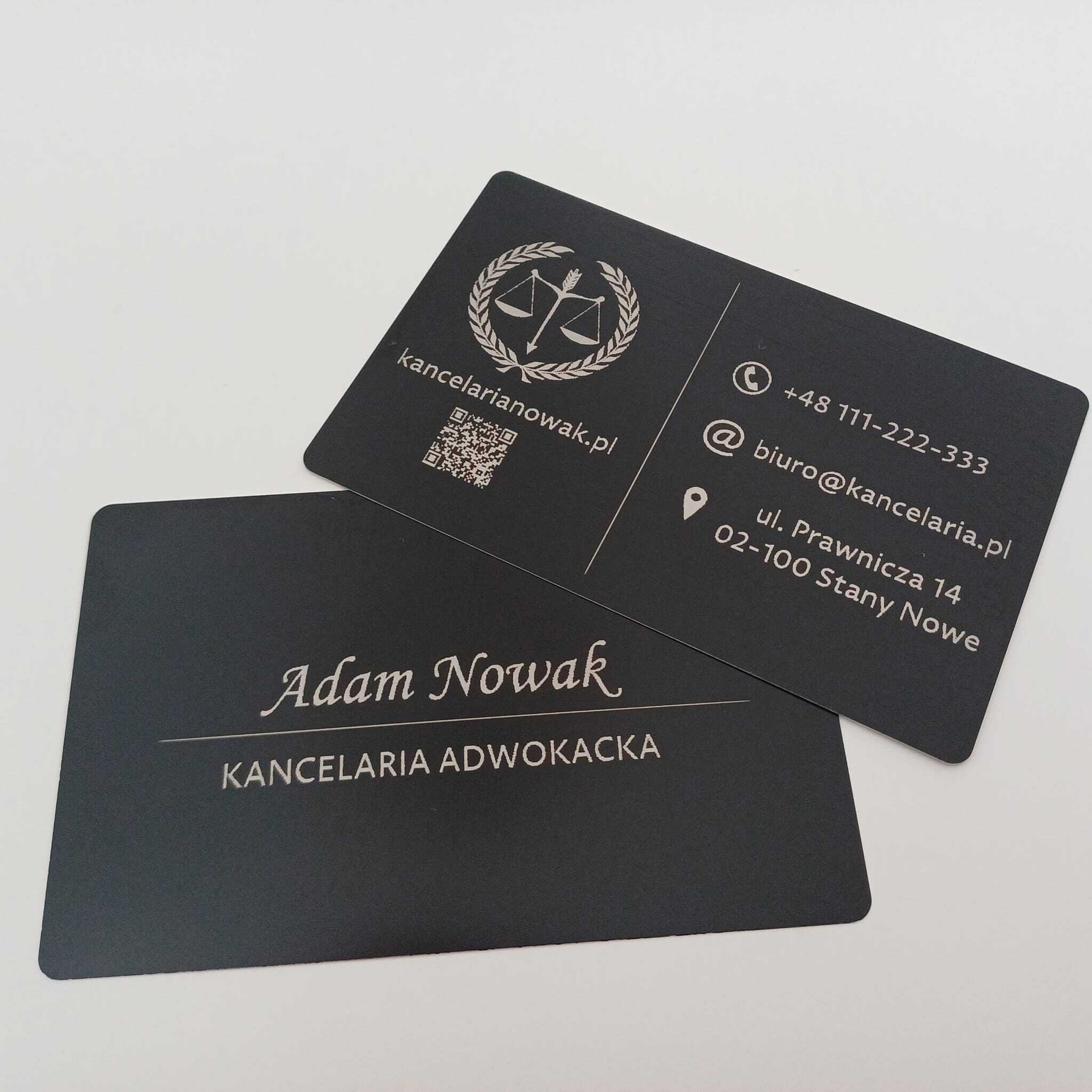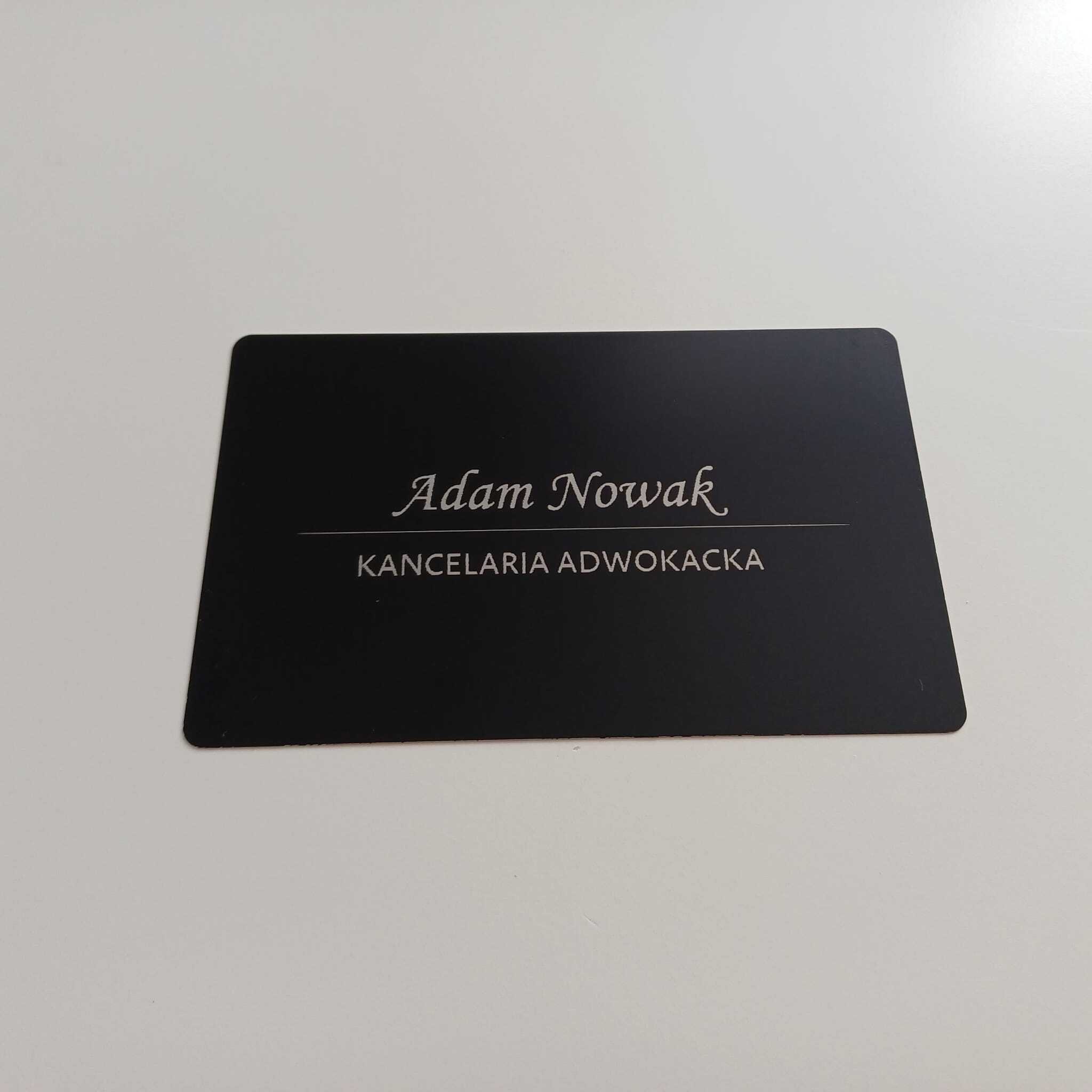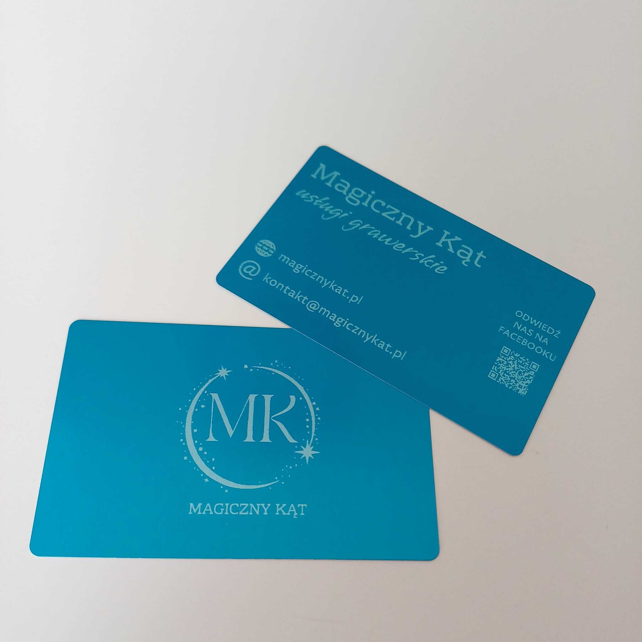Oferujemy wizytówki jednostronne i dwustronne o wymiarach 86 × 54 mm i grubości 2 mm. Wykonane z anodowanego aluminium – grawerowane laserowo, których nie pomylisz z papierową wizytówką.