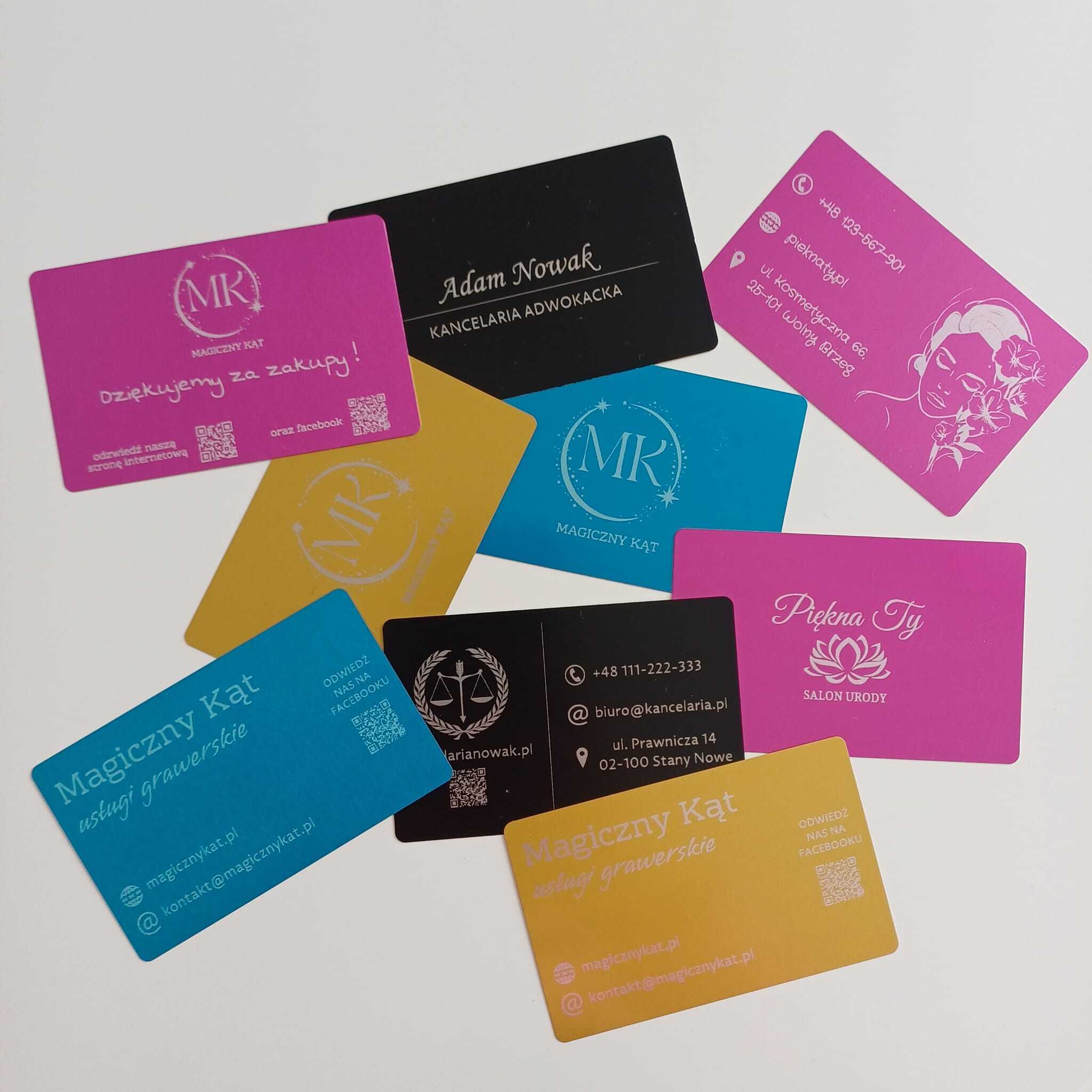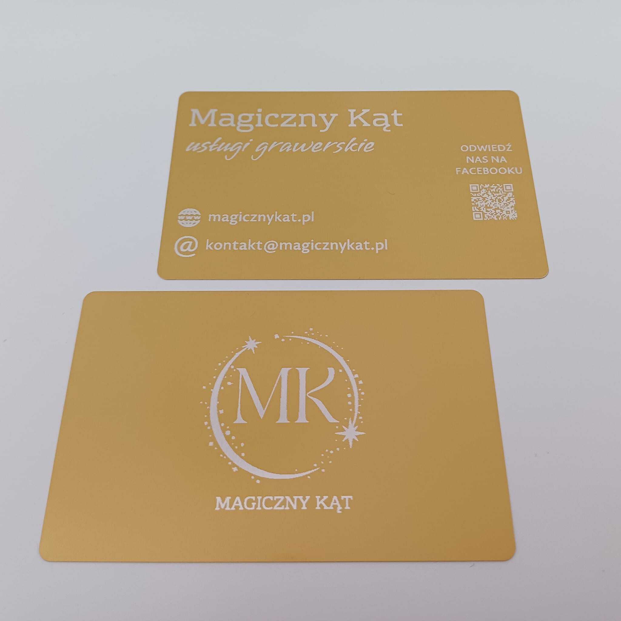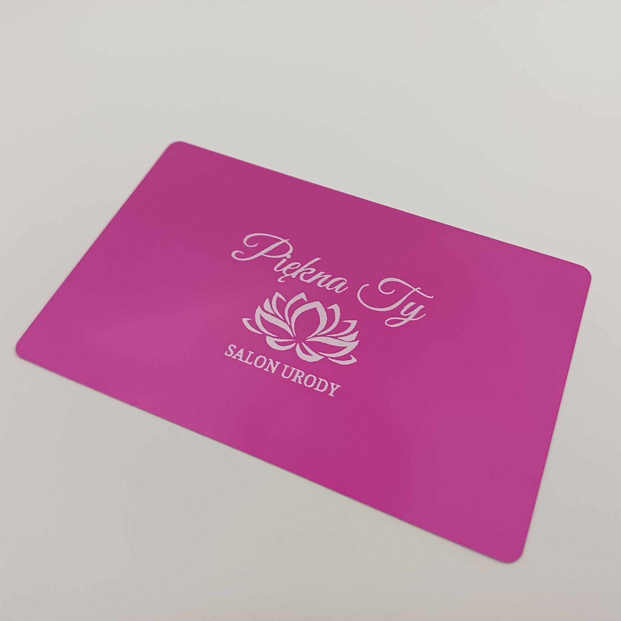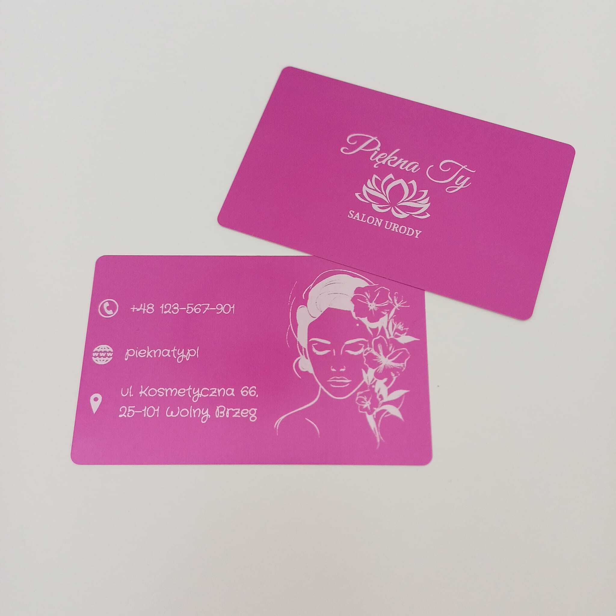 Oferujemy wizytówki jednostronne i dwustronne o wymiarach 86 × 54 mm i grubości 2 mm. Wykonane z anodowanego aluminium – grawerowane laserowo, których nie pomylisz z papierową wizytówką.